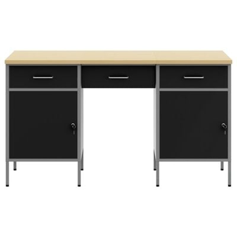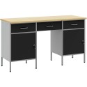 vidaXL Zestaw 3-częściowy: szafka robocza i stół, czarny, z drewna inżynieryjnego i stali