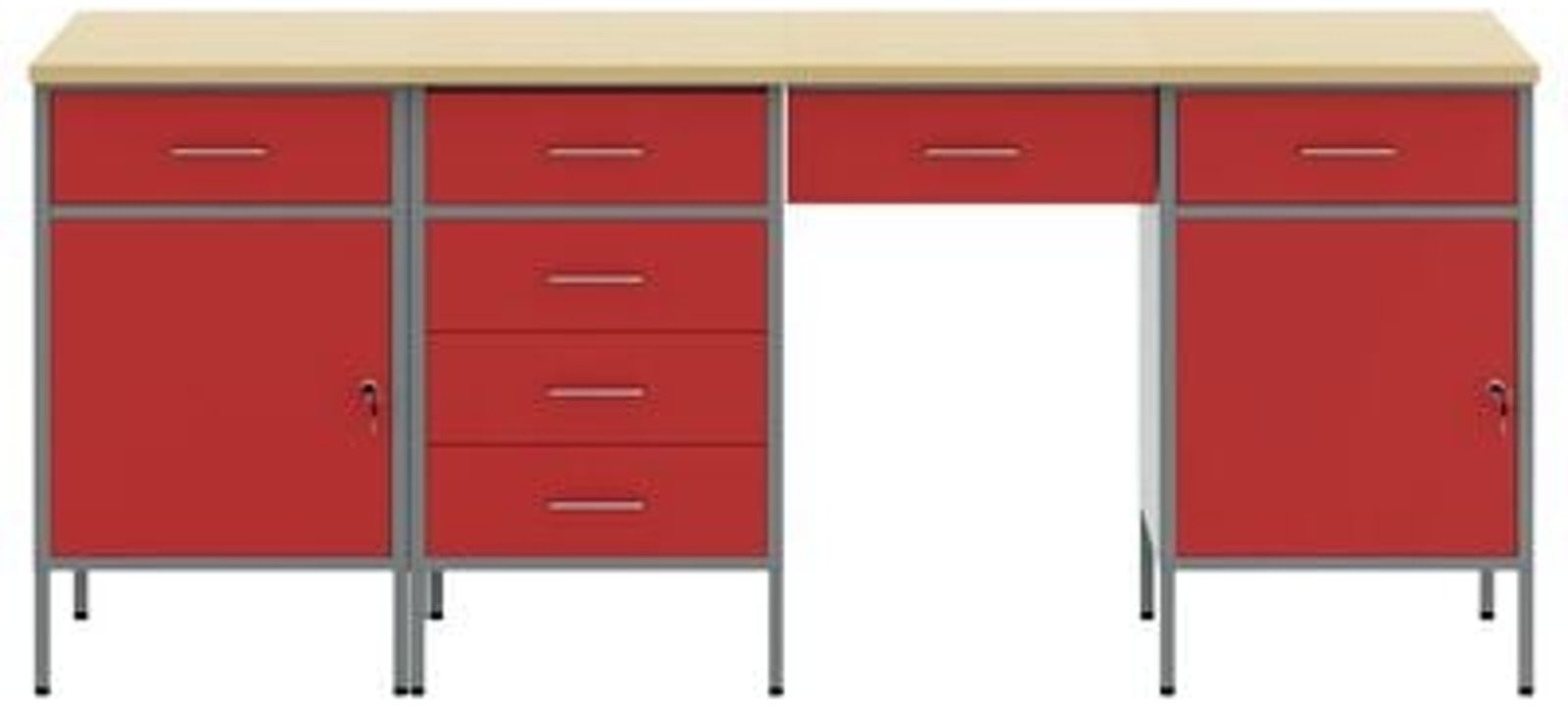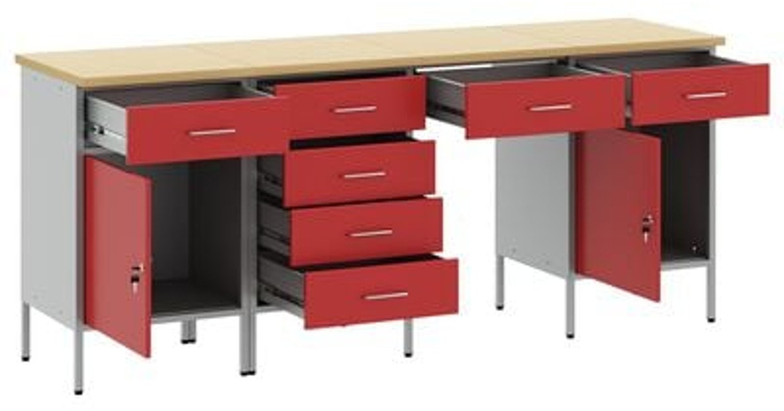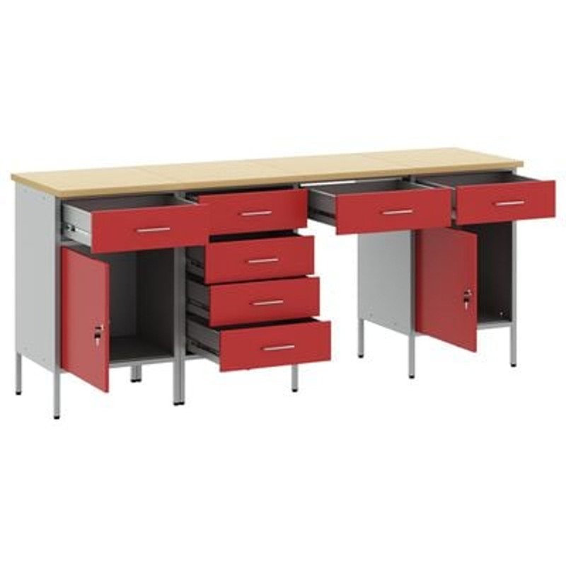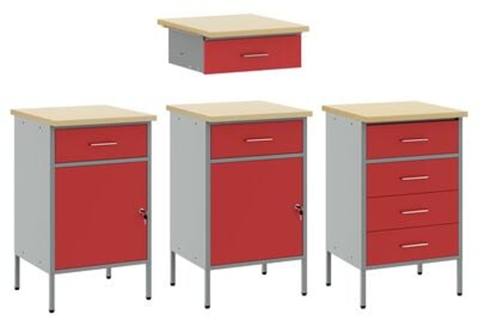 - Zawartość dostawy: 2 x szafka robocza (z 1 drzwiami i 1 szufladą), 1 x szafka robocza (z 1 szufladą), 1 x szafka robocza (z 4 szufladami)