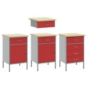vidaXL Zestaw szafek roboczych i stołu 4-częściowy Czerwony z drewna kompozytowego i stali