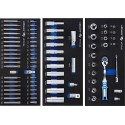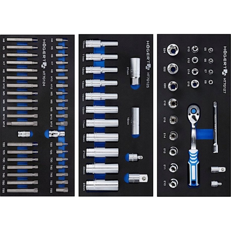 - Wkład HT7G127 Zestaw narzędzi z grzechotką 3/8”, 22 sztuk (HT1A884 (nasadki 1/4”: E5, E6, E7, E8, 3/8”: E10, E12, E14, E16; adapter HT1A771), adapter HT1A772, przedłużka 3/8” HT1A714, grzechotka 3/8” HT1R328, zawartość HT1A880 (nasadki 1/2”, E10, E11, E12, E14, E16, E18, E20, E22, E24)
