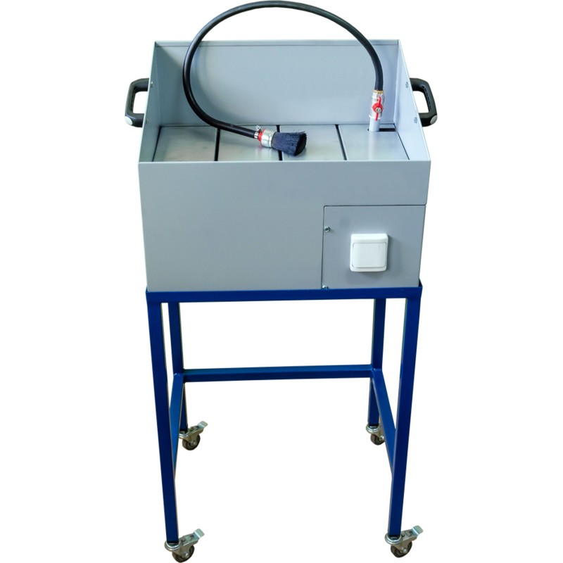 Nazwa producenta: MST WAN 500 MOBILNA Ekologiczna myjka warsztatowa z zamkniętym obiegiem płynu czyszczącego to uniwersalne narzędzie, które znajdzie zastosowanie w różnego rodzaju warsztatach naprawczych i remontowych, w produkcji przemysłowej wyrobów metalowych oraz wszędzie tam, gdzie proces technologiczny wymaga dokładnego mycia i odtłuszczania narzędzi czy części samochodowych. Zasada działania myjki: Płyn myjący znajdujący się w dolnej części myjki podawany jest pompą elektryczną przepływową przez przewód zakończony pędzlem przelotowym na czyszczony przedmiot (np. część silnika ). Przepływająca przez pędzel ciecz, rozpuszcza i zmywa tłuste zanieczyszczenia zalegające na wyrobie podlegającym myciu. Na dnie beczki osadzają się związki cięższe, a płyn myjący (jako lżejszy) powraca do obiegu. Obieg płynu czyszczącego jest zamknięty. Dodatkowe informacje: