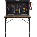 Montowany do ściany stół warsztatowy to doskonałe rozwiązanie do pracy i przechowywania narzędzi. Zapewnia oszczędność miejsca i porządek w warsztacie lub garażu. Posiada szafkę na narzędzia z perforowaną tablicą ułatwiającą organizację. Wyjątkowo solidna konstrukcja zapewnia podwyższoną odporność na warunki atmosferyczne i zabrudzenia. Regulowana długość nóg pozwala dostosować stanowisko robocze do indywidualnych potrzeb użytkownika.