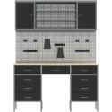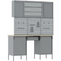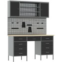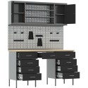 vidaXL Zestaw roboczy z szafką i tablicą pegboard, 7 elementów, czarny MDF i metal