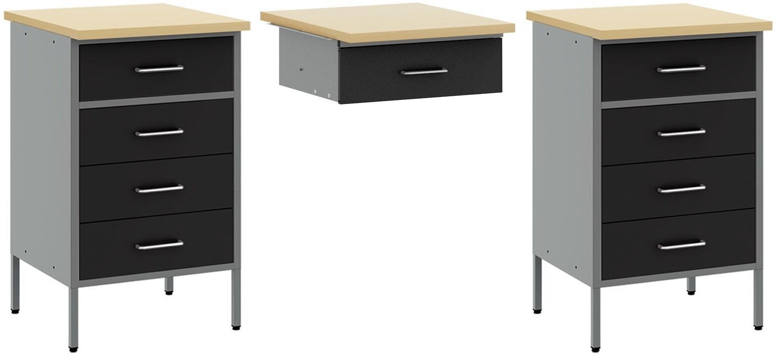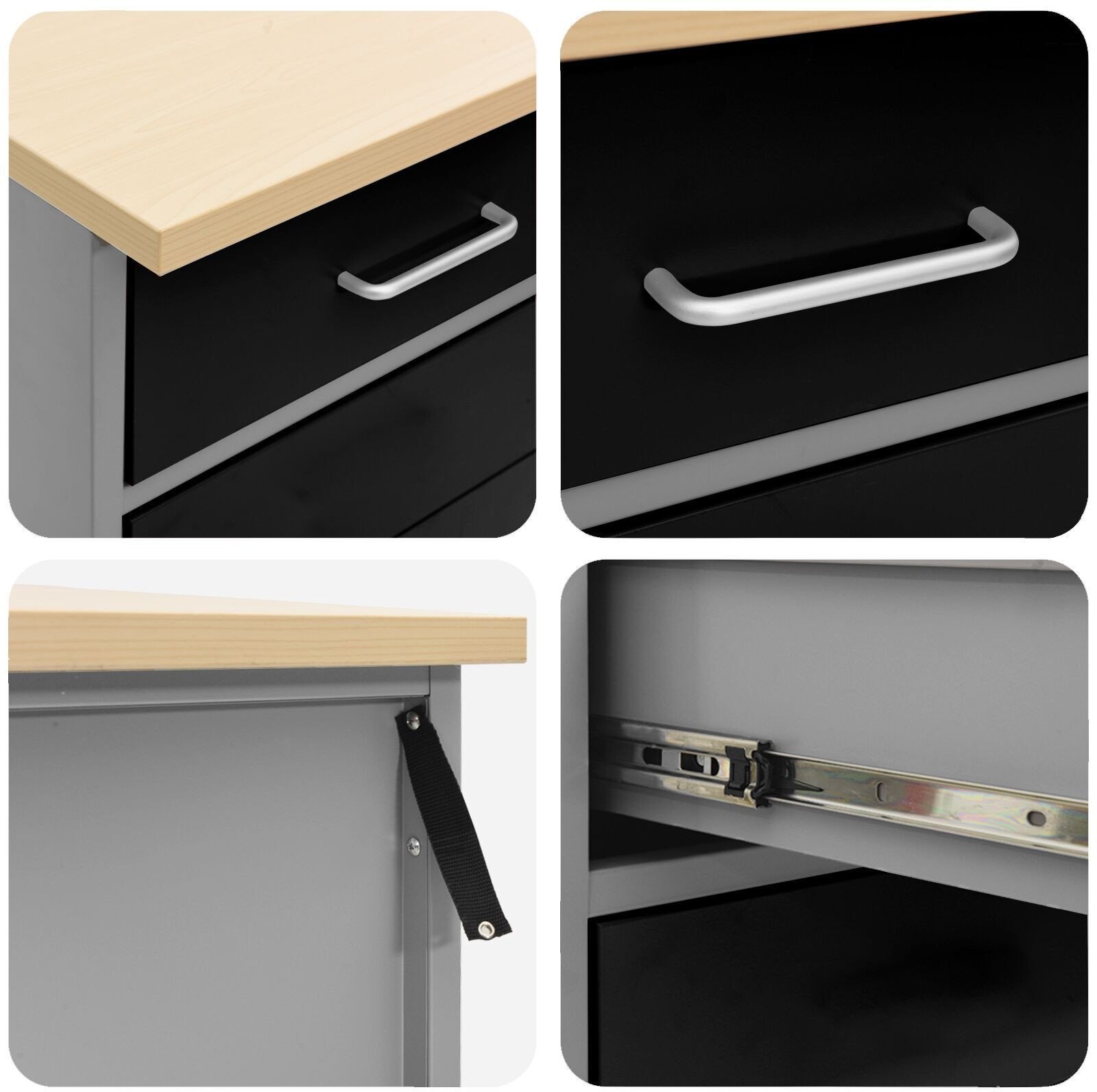 Szafka robocza w zestawie oferuje aż 12 przegrod, co zapewnia obszerną przestrzeń do przechowywania narzędzi, akcesoriów oraz sprzętu. Dzięki temu, utrzymanie porządku w miejscu pracy staje się znacznie prostsze. Każda szuflada ma nośność do 10 kg, a całkowity limit nośności zestawu wynosi 150 kg, co czyni go idealnym do przechowywania różnorodnych przedmiotów.