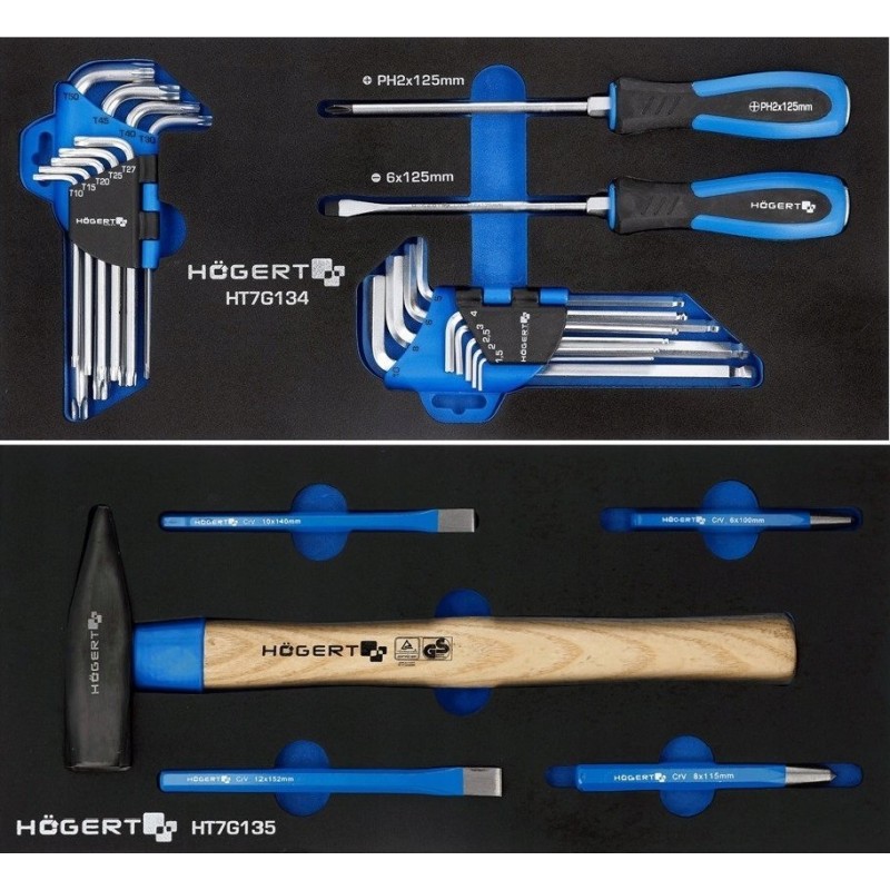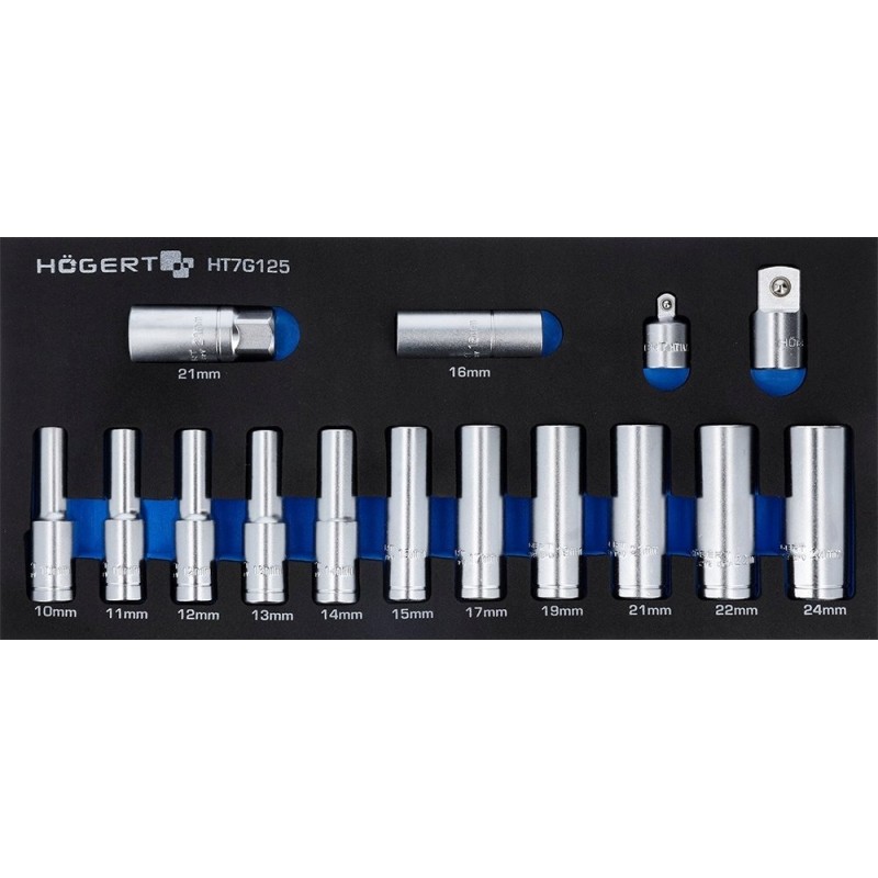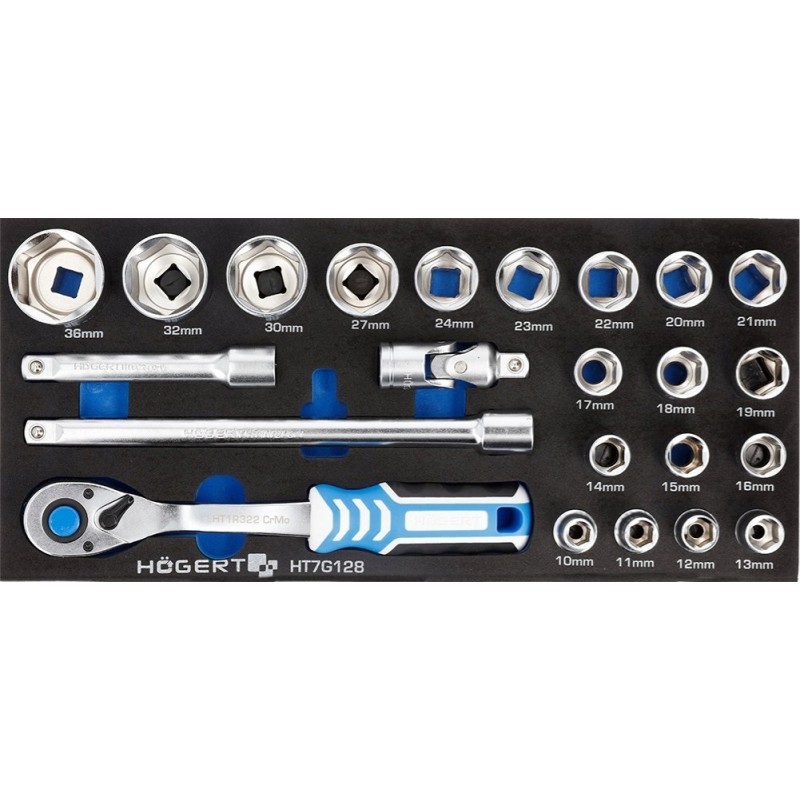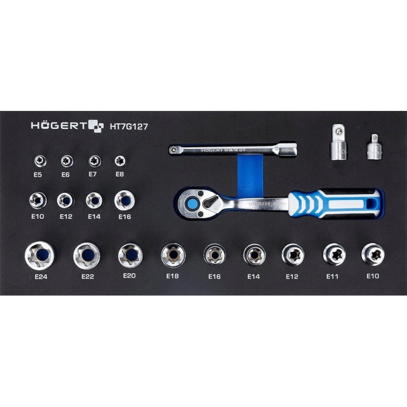 - ⏩ HT7G128 Zestaw narzędzi z grzechotką 1/2", 23 szt., wkład EVA