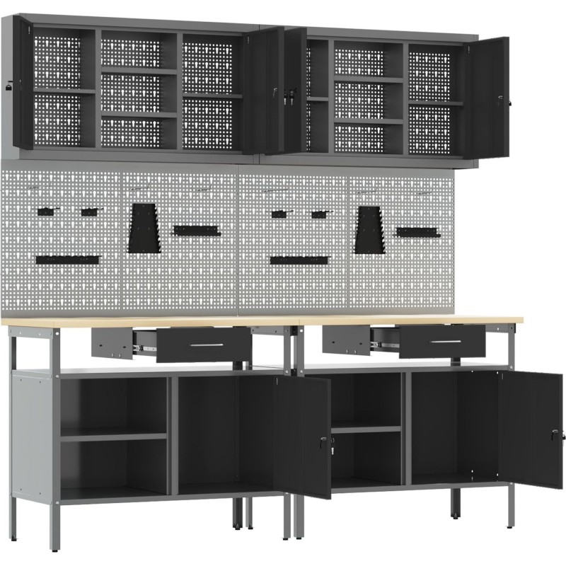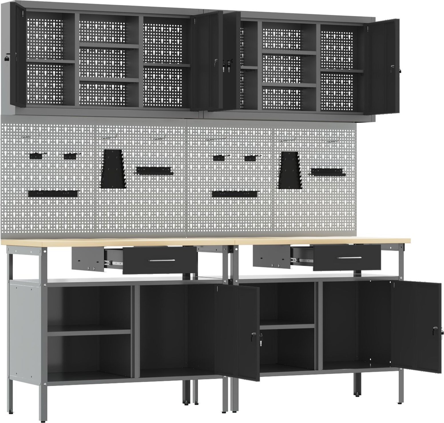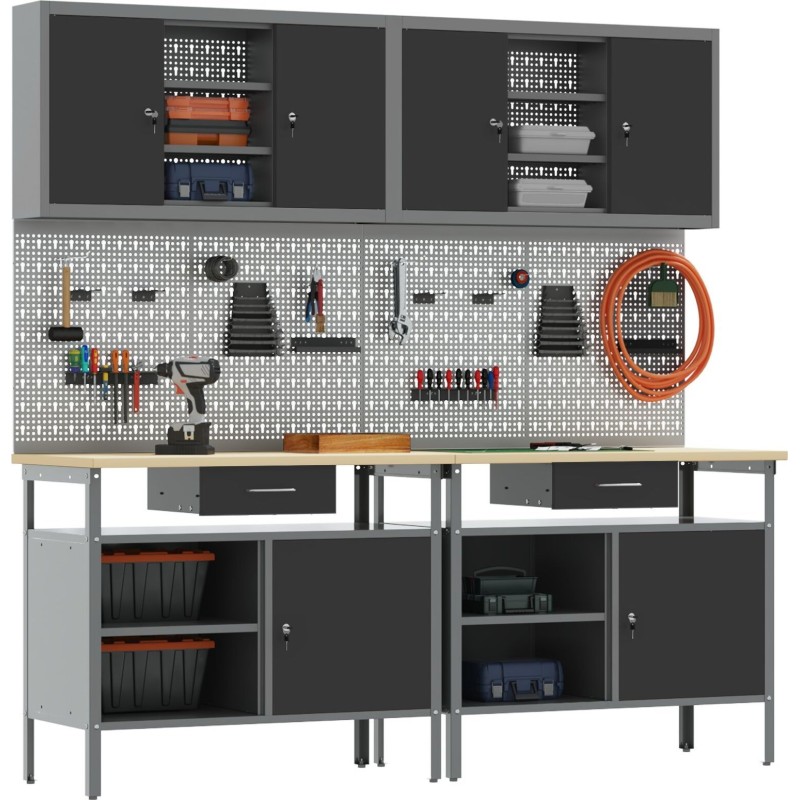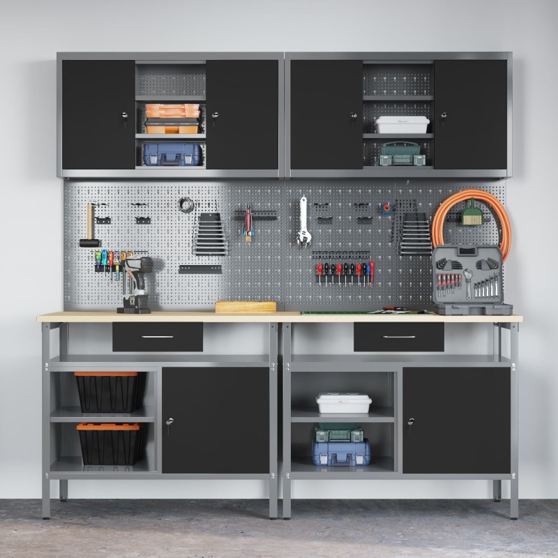 - Funkcjonalny design: Zestaw skada si z 2 awek, 4 pegboardw i 2 szafek, co pozwala na rnorodne opcje przechowywania dopasowane do twoich potrzeb.