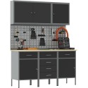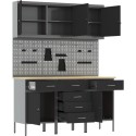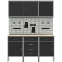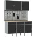 Zestaw szafek roboczych i tablicy narzędziowej vidaXL, 8 elementów, czarny, MDF i metal