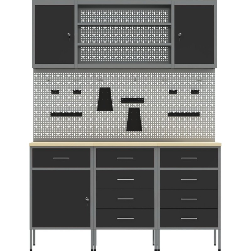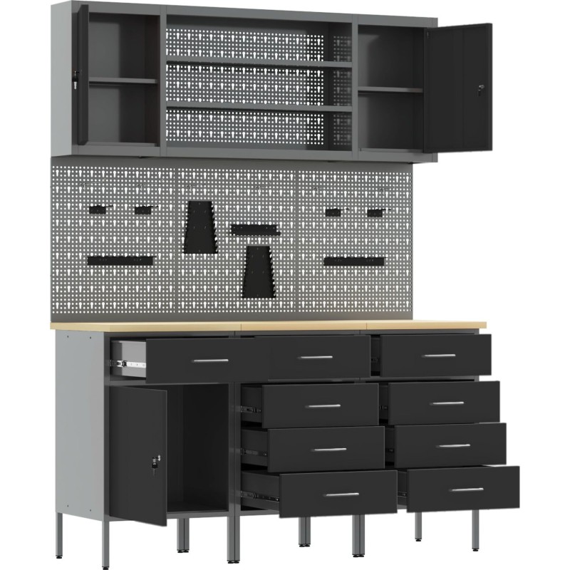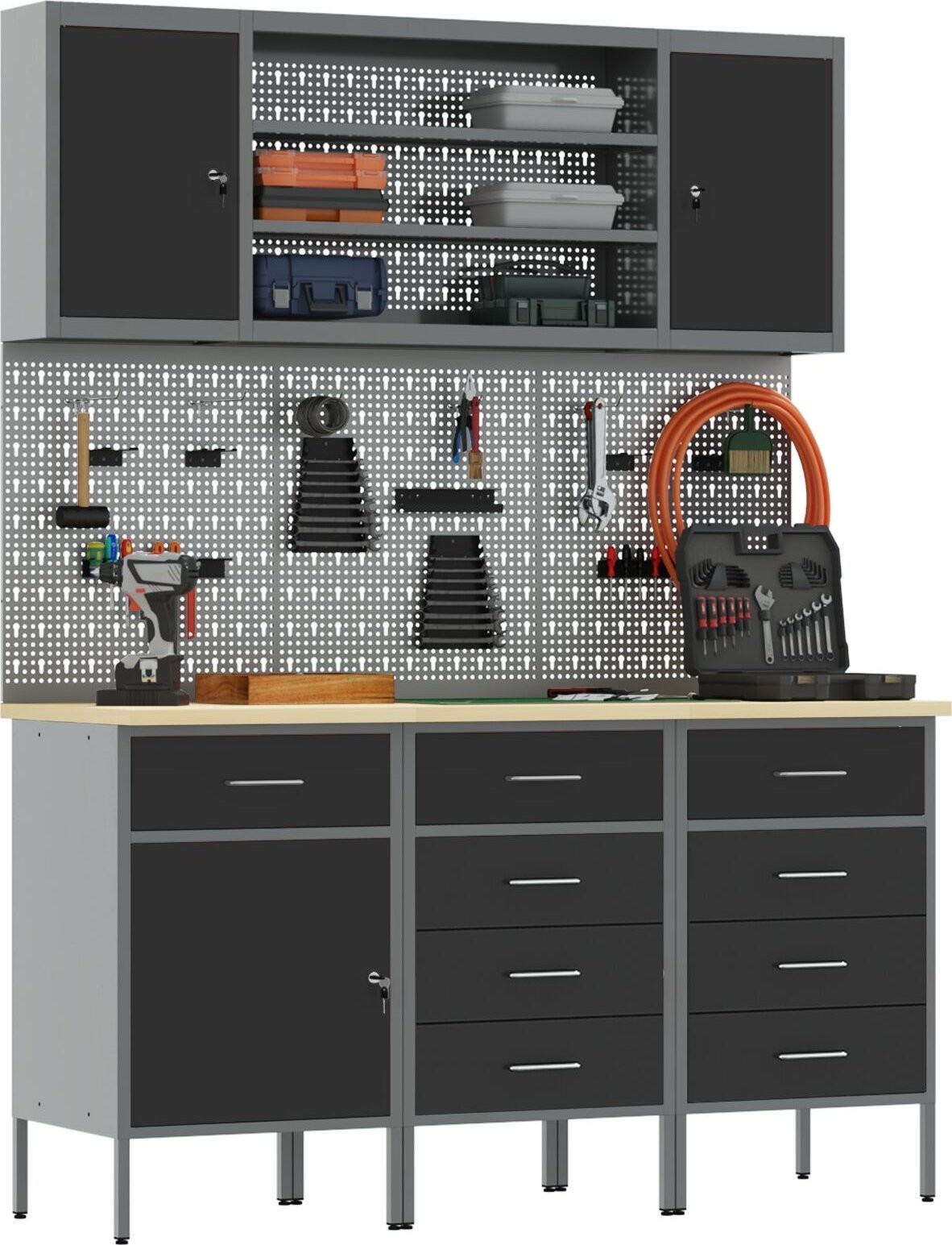 Industrialna szafka warsztatowa jest wietna do uporzdkowania narzdzi i przestrzeni roboczej. Zrobiona z mocnej stali i drewna inynieryjnego, jest trwaa i adna, co czyni j niezbdn w kadym garau lub warsztacie. Stylowe matowe wykoczenie oraz drewnopodobny blatu dodaj elegancji, wietnie komponujc si z wystrojem twojego domu, jednoczenie pozostajc funkcjonalnym.
