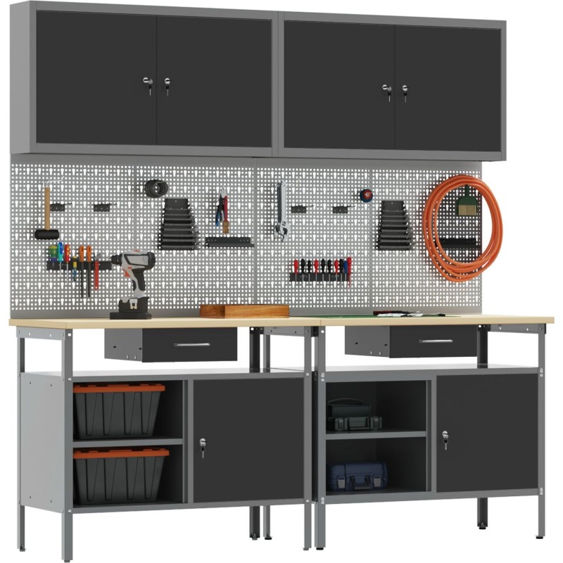 - Wielokrotne rozwizania do przechowywania: Ten zestaw ma 2 mocne awki, 4 pegboardy i 2 szafki na uporzdkowanie narzdzi i sprztu. Wszystko zaprojektowane jest tak, by maksymalnie wykorzysta przestrze, wic bdzie pod rk.
