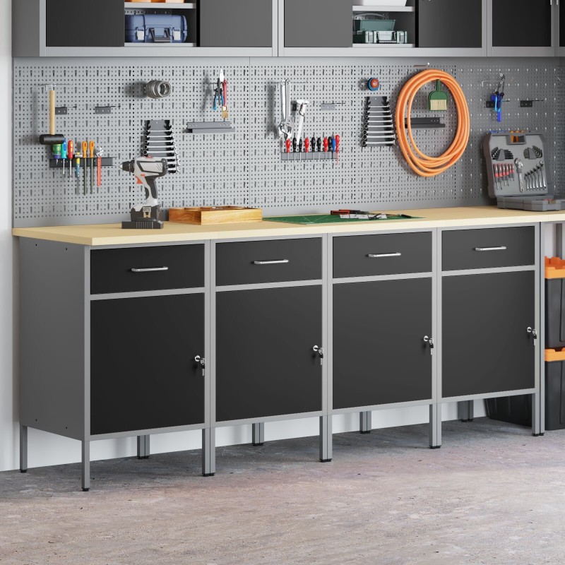 - Solidna konstrukcja: Zrobiona z wytrzymaej stali i materiau drewnopochodnego, ta szafka dobrze znosi codzienne uytkowanie. Jej solidne materiay udwign maksymalnie 150 kg, czynic j wietnym wyborem do kadego warsztatu.