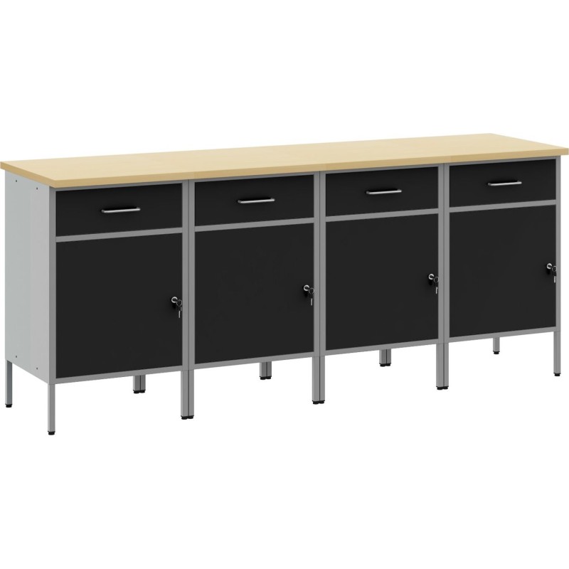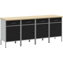 Ta przemysowa szafka robocza z szuflad i zamykanymi drzwiami daje duo miejsca do przechowywania w warsztacie lub garau, czc praktyczno z nowoczesnym wygldem, dopasowujcym si wszdzie. Jej eleganckie czarno-szare wykoczenie dodaje stylu, sprawiajc, e to wietny wybr do organizacji narzdzi oraz skutecznoci w miejscu pracy.