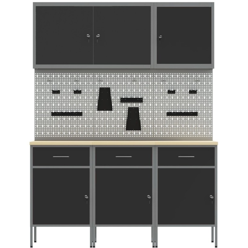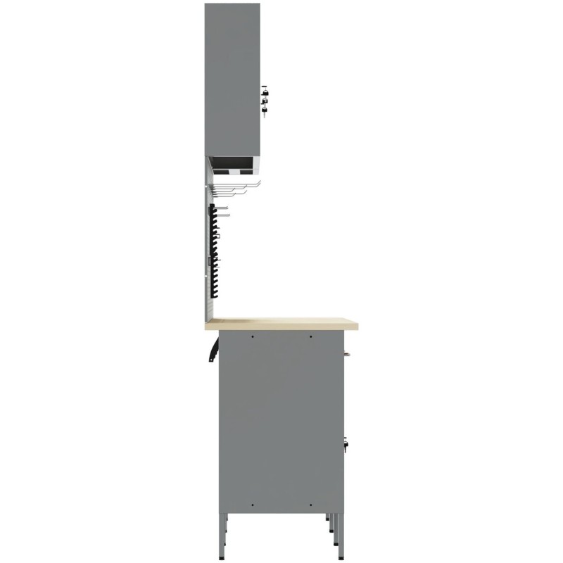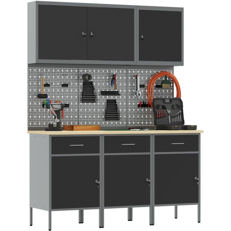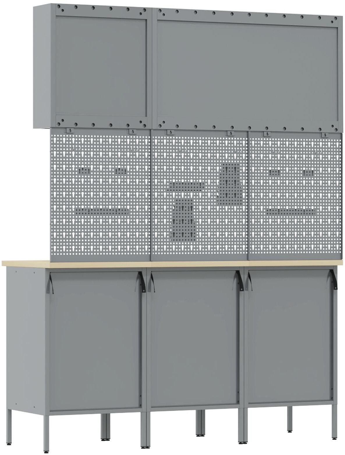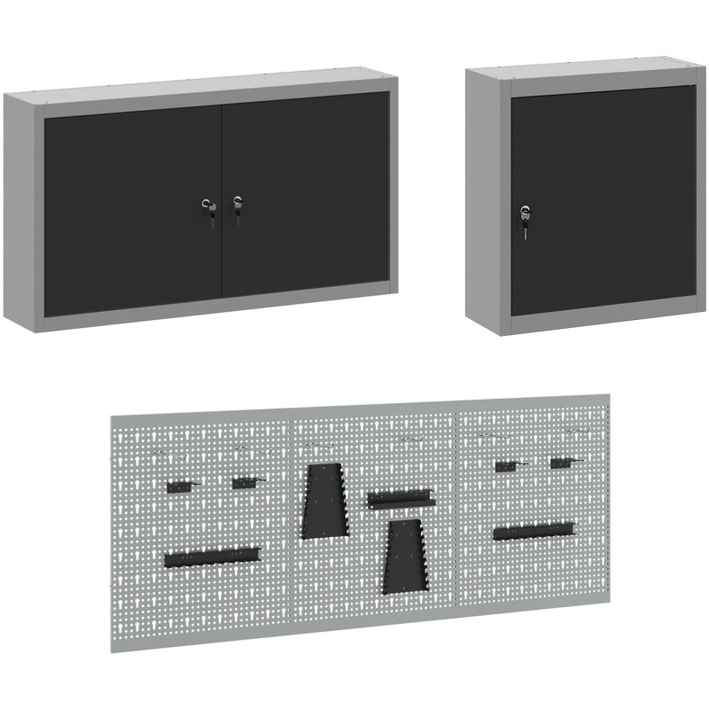 - Półki wiszące: Zawiera trzy półki montowane na ścianie, które maksymalizują przestrzeń pionową, trzymając często używane narzędzia w zasięgu ręki. To pomoże utrzymać porządek i ułatwi wykonanie pracy.