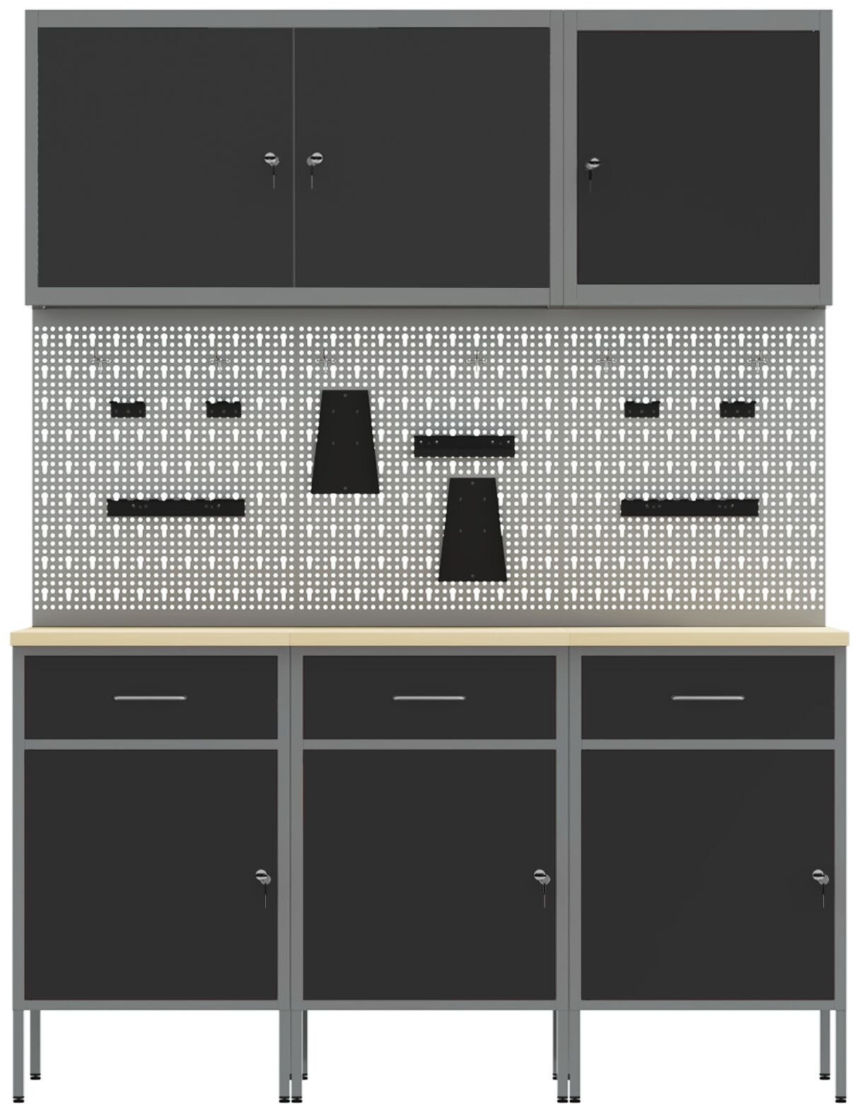 Zestaw szafek roboczych vidaXL Zestaw 6 Czarny Stal Duży