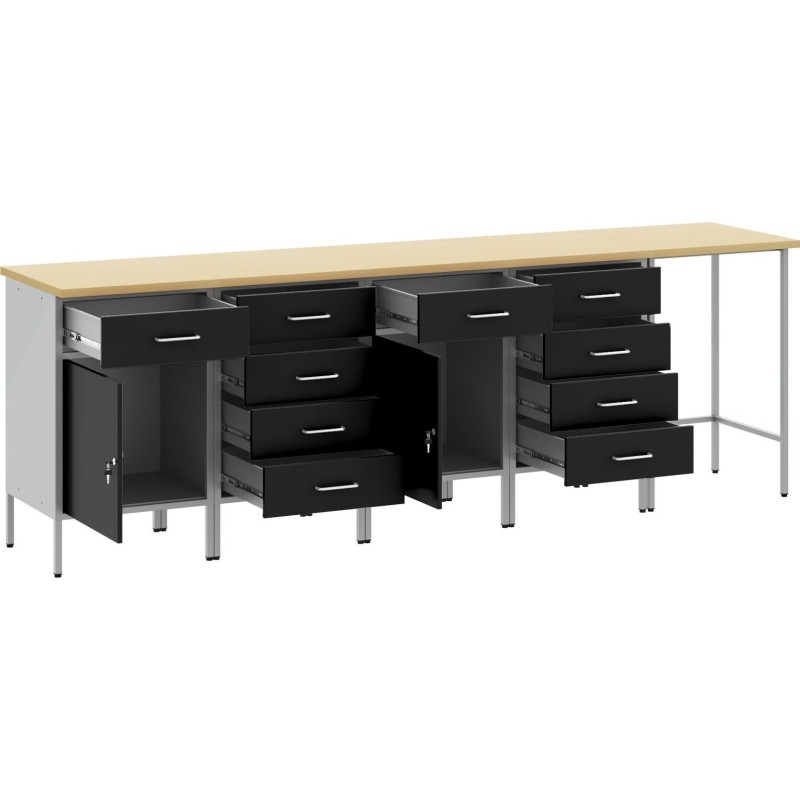 - Dua Przestrze do Przechowywania: Z przestronnym blatem roboczym i licznymi szufladami, w tym jedn z gadkimi oyskami, a do tego zamykanymi drzwiami, to wietne rozwizanie dla twoich narzdzi. atwy dostp do wszystkiego, co niezbdne, od kluczy po materiay rzemielnicze.