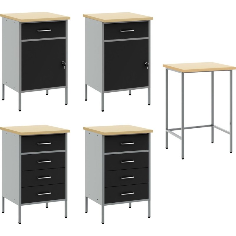 vidaXL Zestaw 5 Czarny Stal Duży Regulowana Wysokość Szafka Robocza