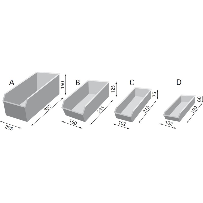 Wymiar pojemnika A szer. x gł. x wys (mm): 205 x 352 x 150
