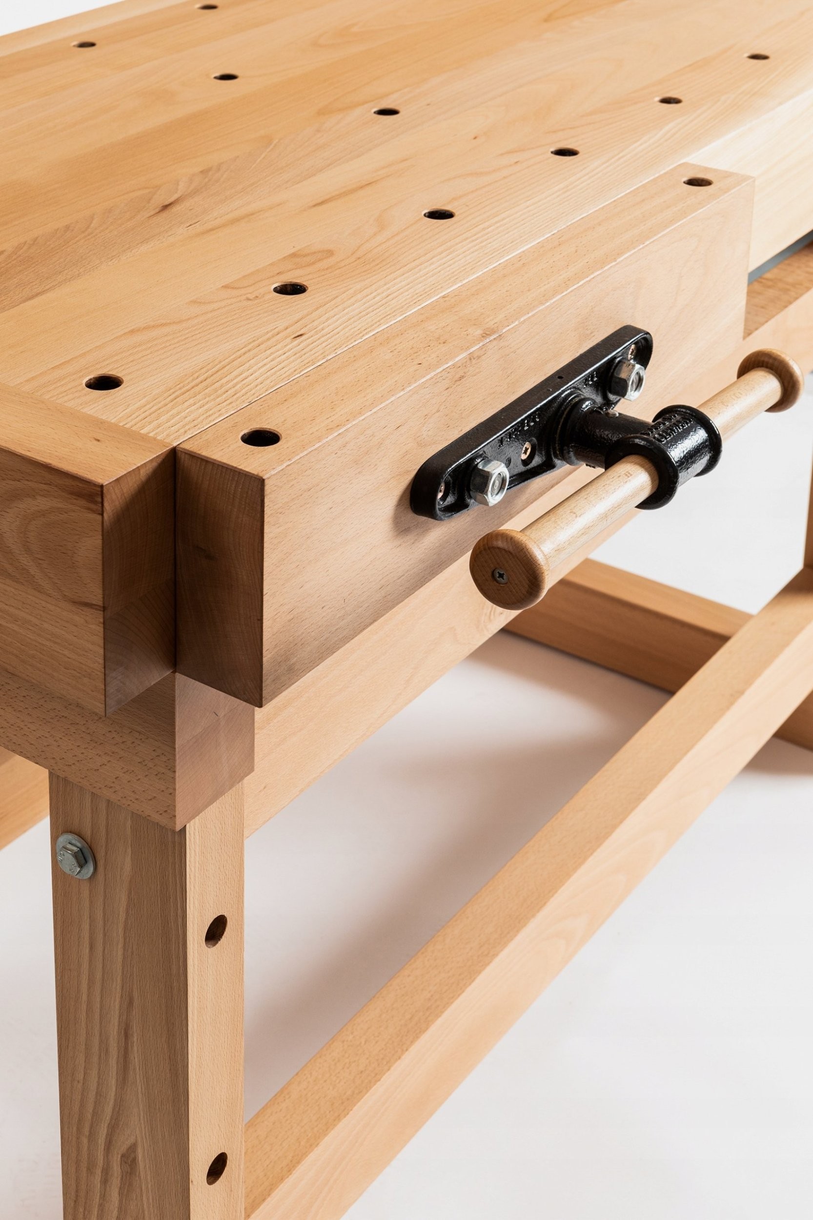 Masywna drewniana strugnica stolarska, wykonana z wysokiej jakości buku parzonego.