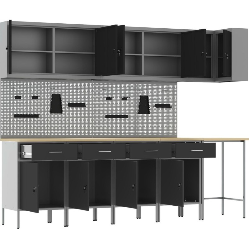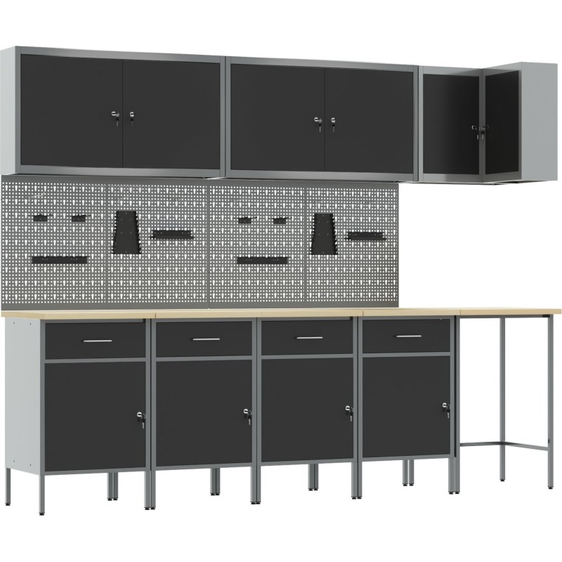 Ta industrialna szafka robocza jest stworzona z myl o intensywnym uytkowaniu w kadym warsztacie lub garau. Z odwanym czarnym i szarym wykoczeniem, jest nie tylko praktyczna, ale take wietnie wyglda w Twoim miejscu pracy.