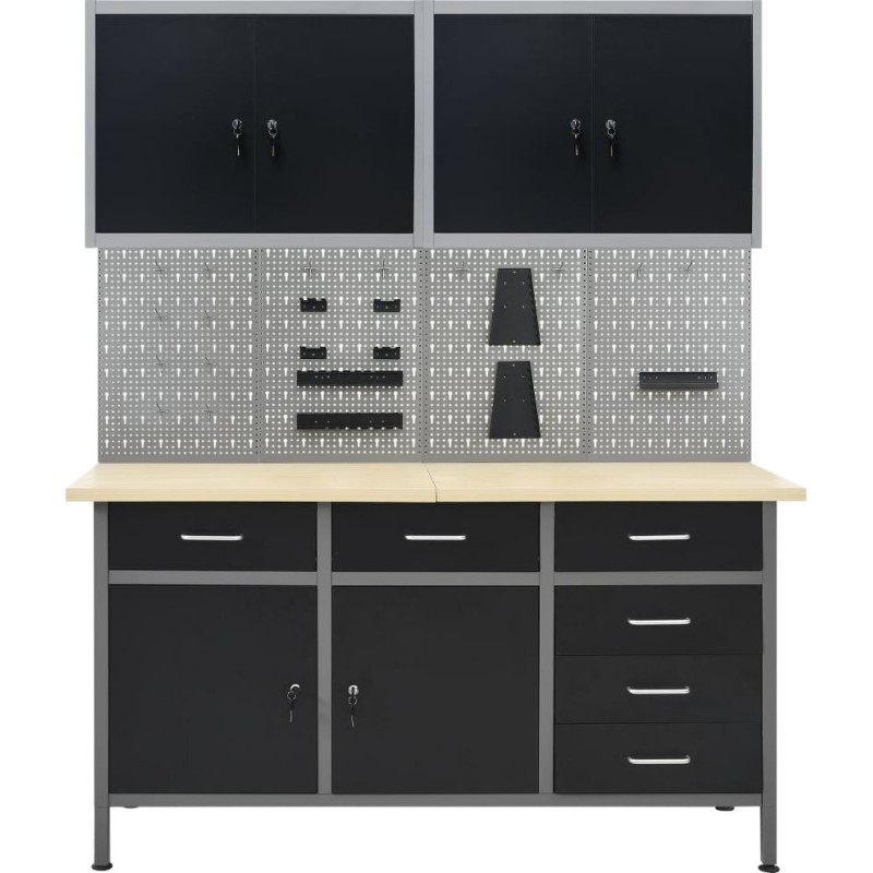 vidaXL Stół roboczy z 4 panelami ściennymi i 2 szafkami