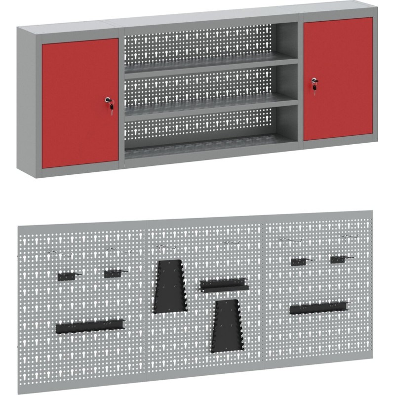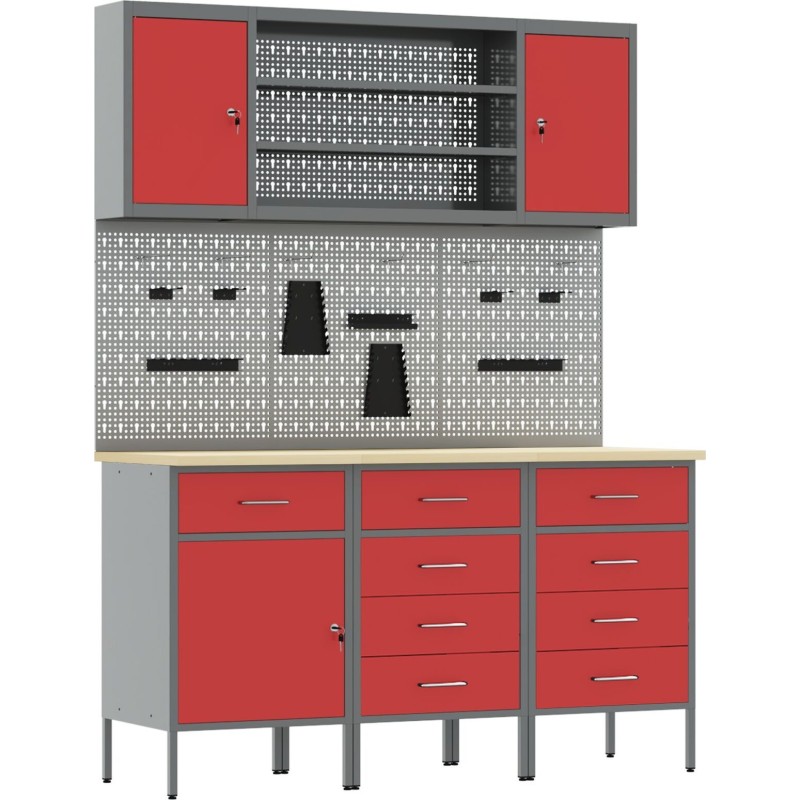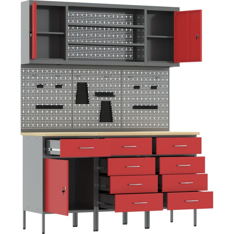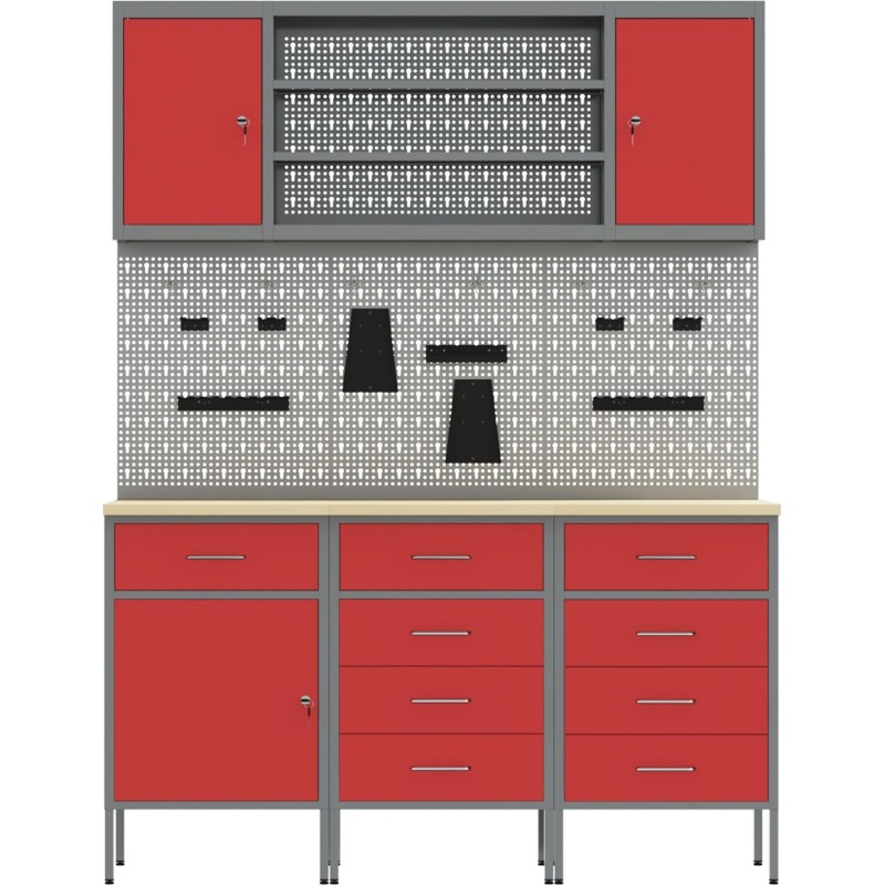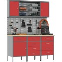 - Delivery Contains: Szafka robocza z 1 szufladą i 1 drzwiami, szafka robocza z 4 szufladami, panel ściany narzędziowej X3szt