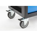 Kółka TPR o rozmiarze 5×1.25” wyposażone w łożyska kulkowe zapewniają płynne poruszanie się, a dwa z hamulcami pozwalają na zablokowanie szafki.