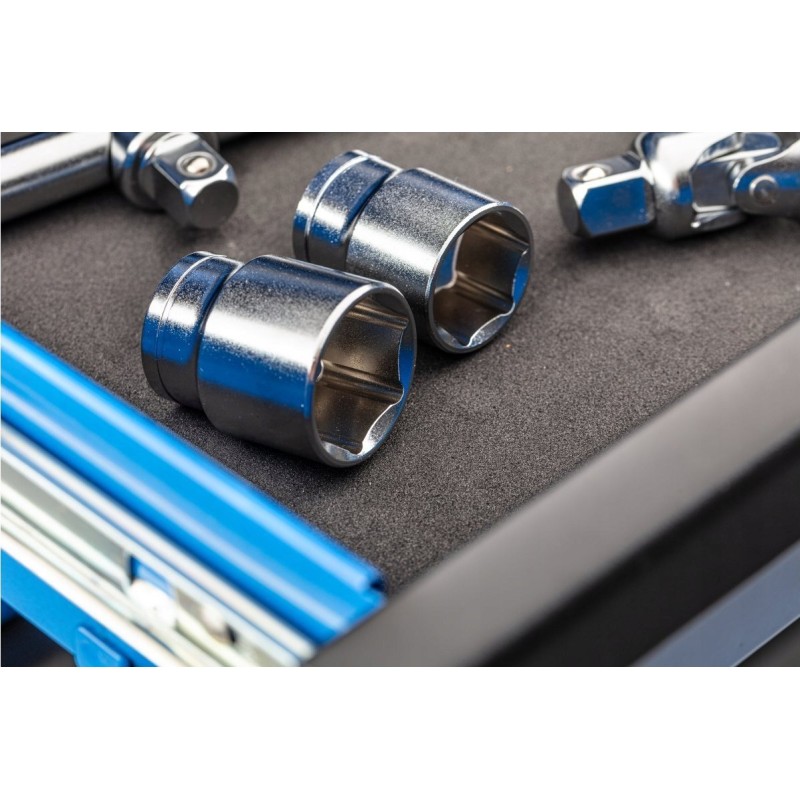 Wszystkie szuflady posiadają wypełnienie z pianki EVA, które chroni narzędzia przed uszkodzeniami i wstrząsami.