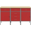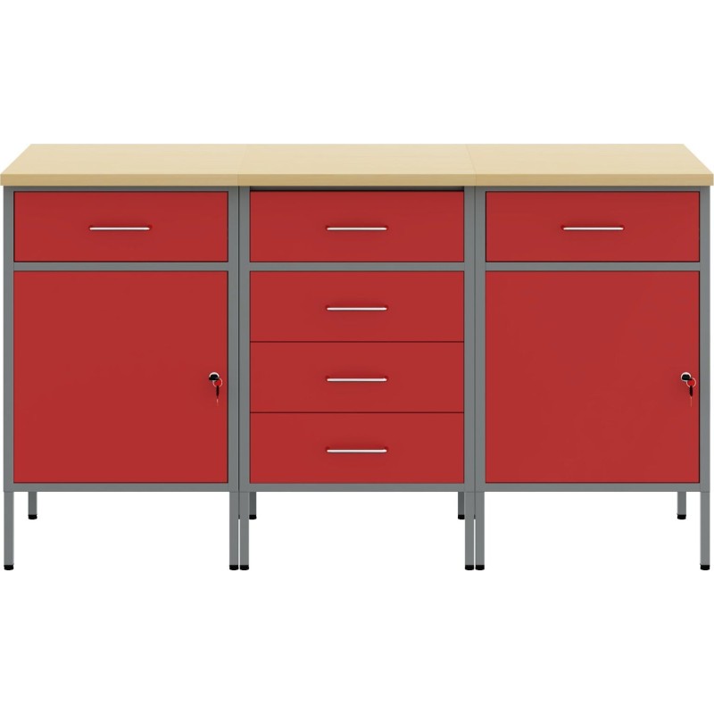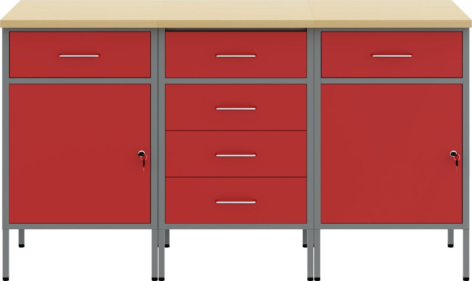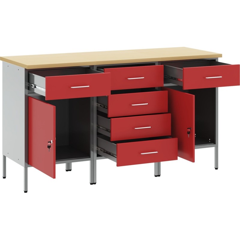 Ta industrialna szafka robocza to mocne poczenie stali i materiaw drewnopochodnych, co czyni j wietnym wyborem do garau lub miejsca pracy. Jej czerwono-szary design prezentuje si wietnie i zapewnia doskonae przechowywanie dla narzdzi i akcesoriw, trzymajc wszystko w porzdku i nowoczenie.