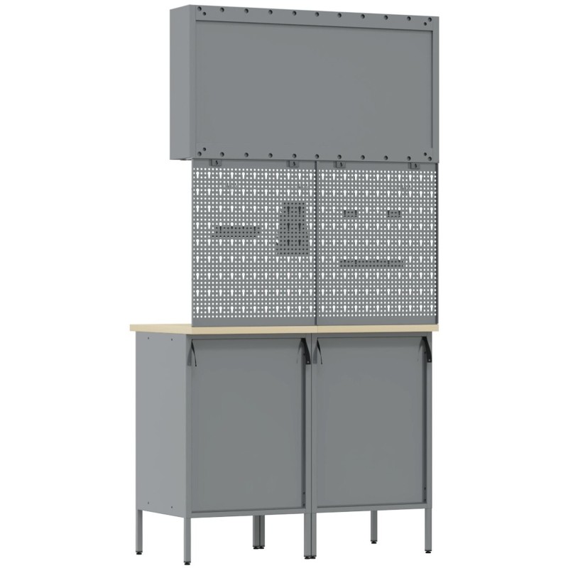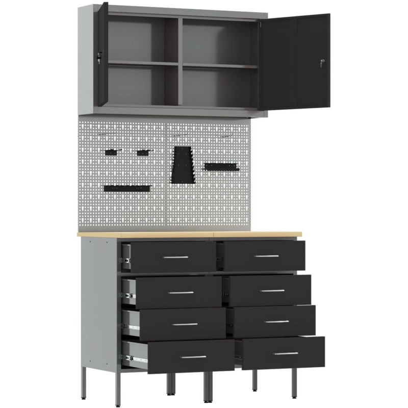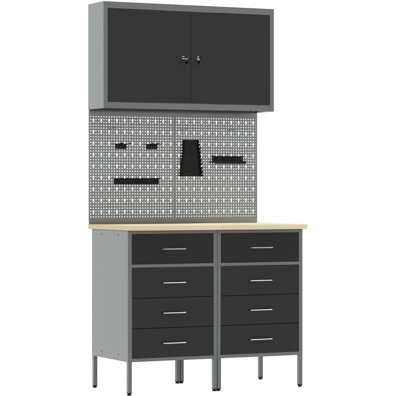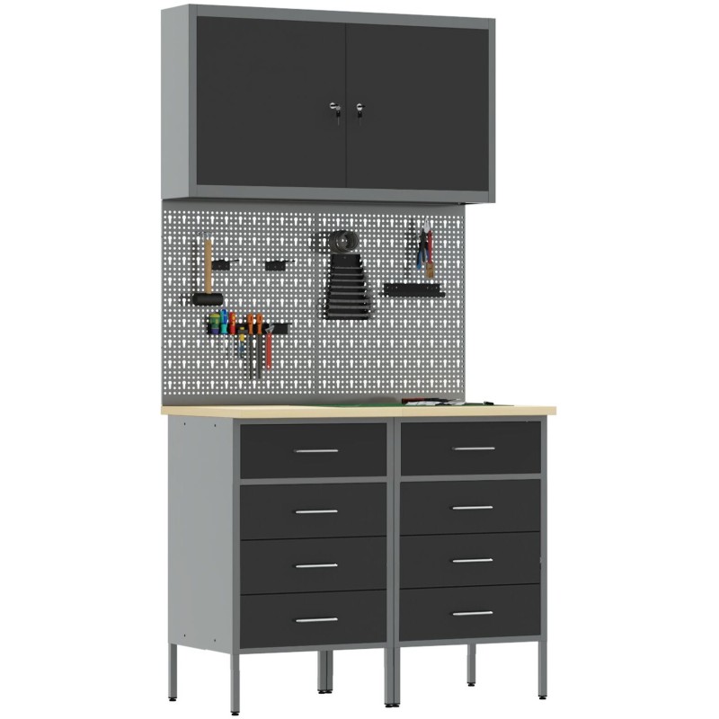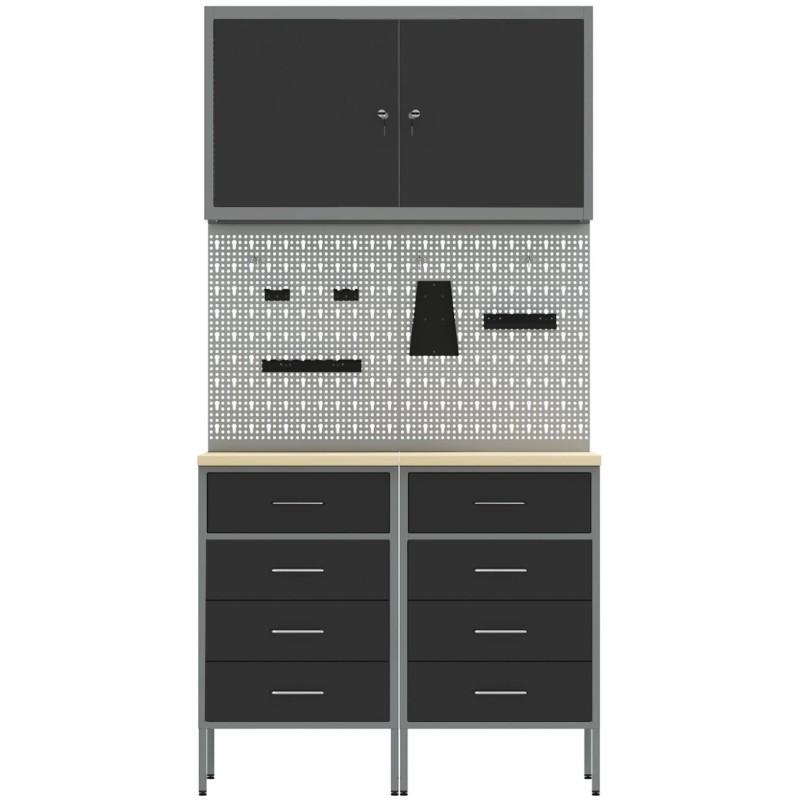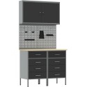 Ta przemysłowa szafka narzędziowa to połączenie stylu i funkcji, które są niezbędne w każdym warsztacie lub garażu. Dzięki mocnej stalowej konstrukcji i materiałom drewnopochodnym, daje dużo miejsca na przechowywanie i dodaje nowoczesnego industrialnego klimatu do przestrzeni.