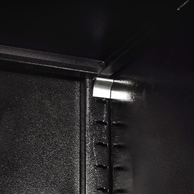 Wykonana z mocnej stali z powłoką odporną na zarysowania szafa jest bardzo wytrzymała i trwała. Twoje narzędzia i inne rzeczy będą bezpieczne dzięki 3-punktowemu systemowi zamykania z 2 pasującymi kluczami. Ta szafka na narzędzia ma 3 wbudowane uchwyty do zawieszania pojemników (niedołączone do zestawu) i 3 wyjmowane półki o maksymalnym obciążeniu 40 kg (każda). Płyta perforowana może posłużyć do zawieszenia wszelkiego rodzaju narzędzi, takich jak klucze, szczypce, młotki itp. (narzędzia i haczyki nie są zawarte w dostawie).