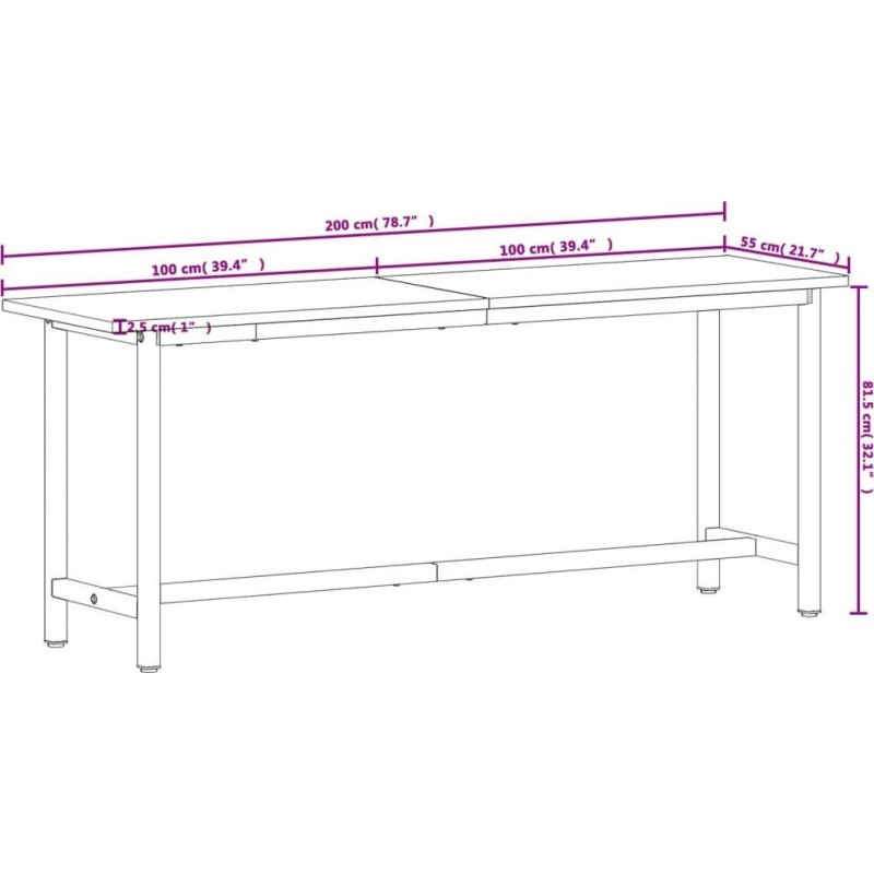 vidaXL Stół roboczy, 200x55x81,5 cm, lite drewno bukowe i metal