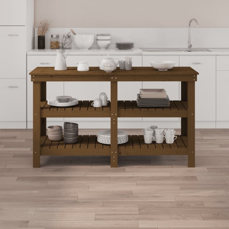 vidaXL vidaXL Stolik roboczy, miodowy brąz, 142,5x50x80 cm, drewno sosnowe