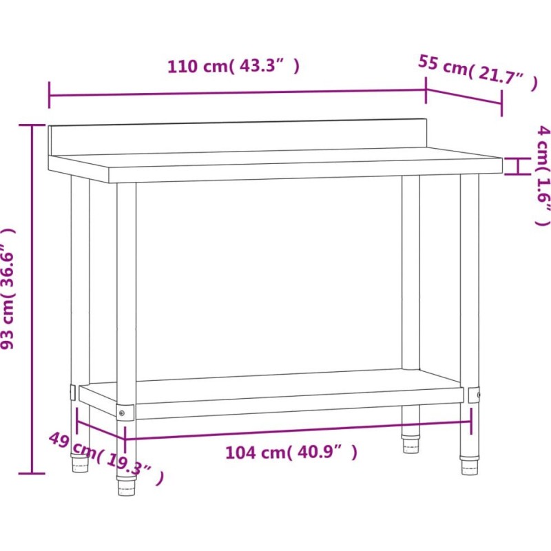 vidaXL Kuchenny stół roboczy z rantem, 110x55x93 cm, stal nierdzewna