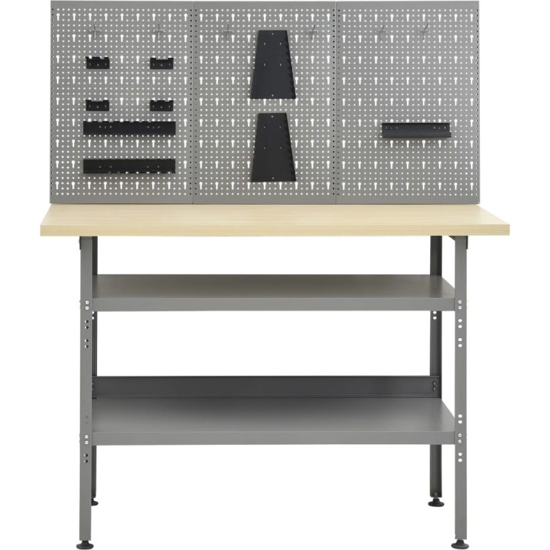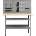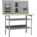 Zestaw ten łączy 1 stół roboczy i 3 panele ścienne, stanowiąc praktyczne rozwiązanie kwestii przechowywania w warsztacie lub garażu.