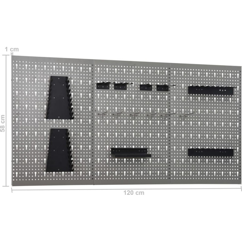 Panele narzędziowe wykonano z solidnej stali, aby mogły utrzymać ciężar różnych narzędzi, takich jak: wiertła, szczypce, śrubokręty i klucze. Płyty są perforowane, aby móc łatwo i bezpiecznie powiesić narzędzia. 3 panele można połączyć razem, aby zwiększyć ich sztywność. Jest to idealne rozwiązanie do Twojego stołu roboczego i szafki w warsztacie za sprawą szerokości 120 cm.