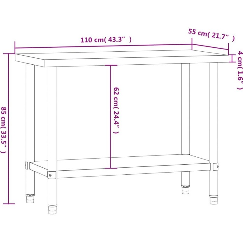 vidaXL Kuchenny stół roboczy, 110x55x85 cm, stal nierdzewna