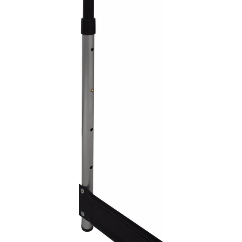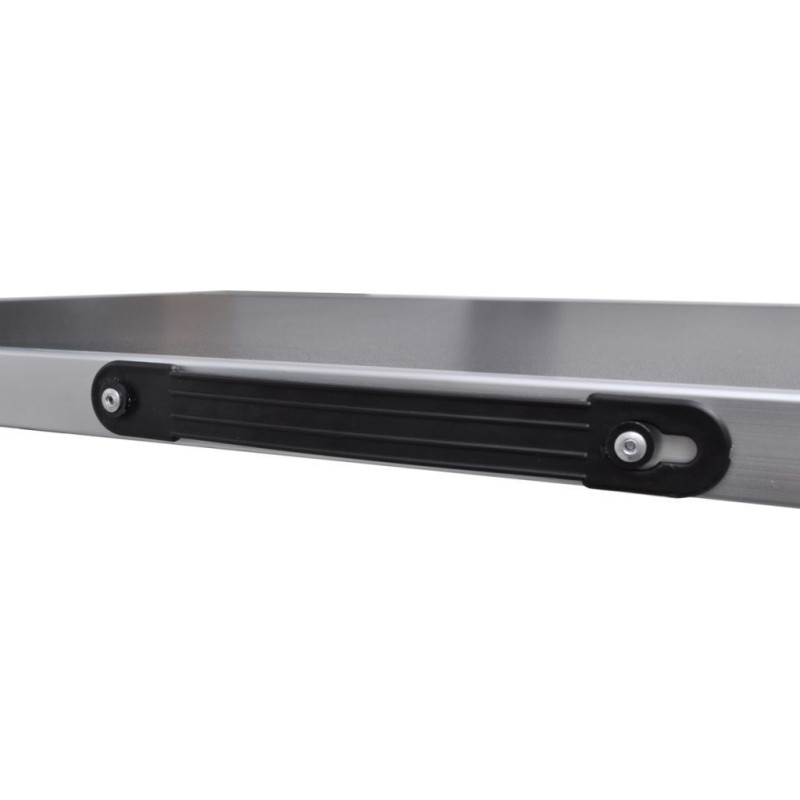 Łatwy do czyszczenia, czarny blat z MDF wpierany jest przez nogi żelazne oraz mocne, ale lekkie nogi aluminiowe, przez co cały zestaw zachowuje stabilność. Stoły, mogące utrzymać maksymalnie 30 kg, mają regulowaną wysokość: 73, 80, 87 i 94 cm.