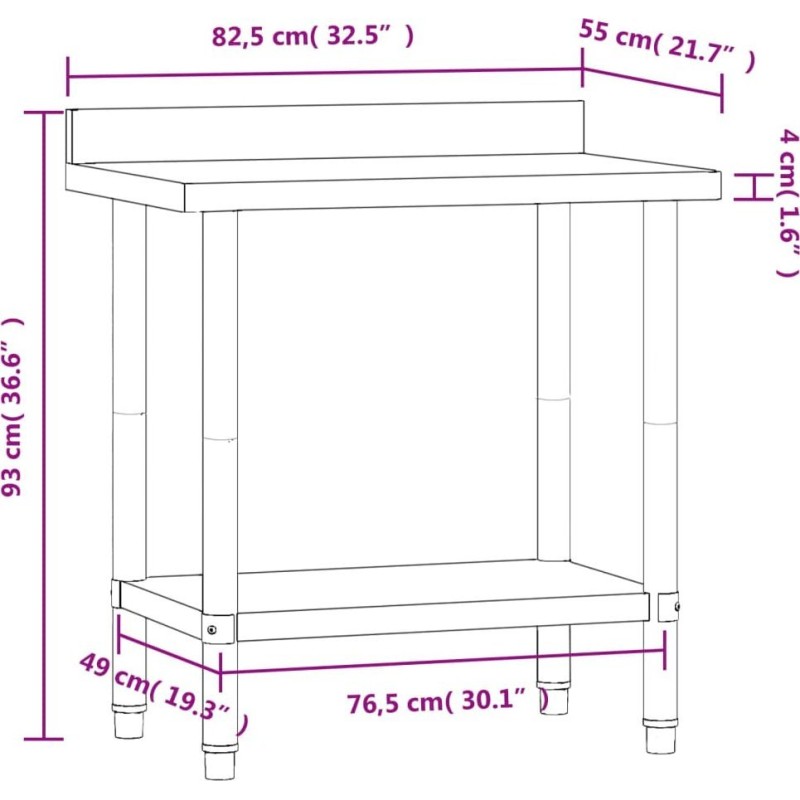 vidaXL Kuchenny stół roboczy z rantem, 82,5x55x93 cm, stal nierdzewna