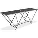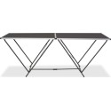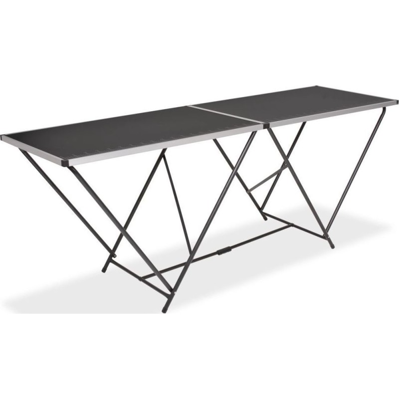 Stół ten ma ramę wykonaną z mocnego i lekkiego aluminium oraz blat z łatwego do czyszczenia MDF. Może on utrzymać do 20 kg obciążenia. Jego nogi ze stalowych rurek mają kształt litery W i zapewniają trwałość i stabilność. Stół można złożyć, dzięki czemu łatwo go przenieść i przechowywać, kiedy nie jest w użyciu.