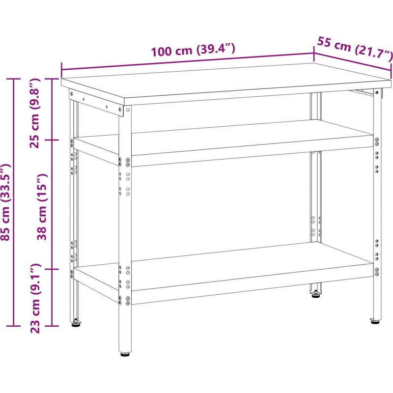 Stół roboczy vidaXL Szary, Brązowy