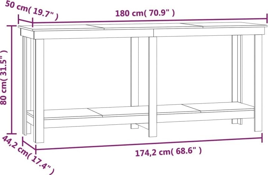 vidaXL vidaXL Stół roboczy, 180x50x80 cm, lite drewno sosnowe