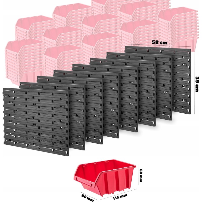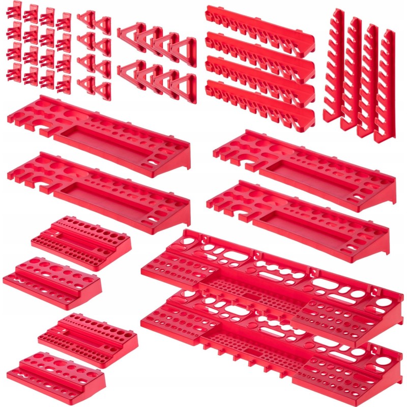 WYGODNE - kuwety magazynowe, półki i uchwyty wystarczy umieścić na tablicy narzędziowej, a następnie wypełnić je akcesoriami. Można ułożyć je w dowolnej konfiguracji.