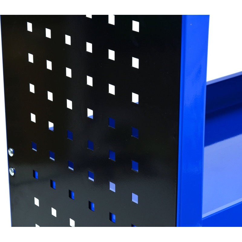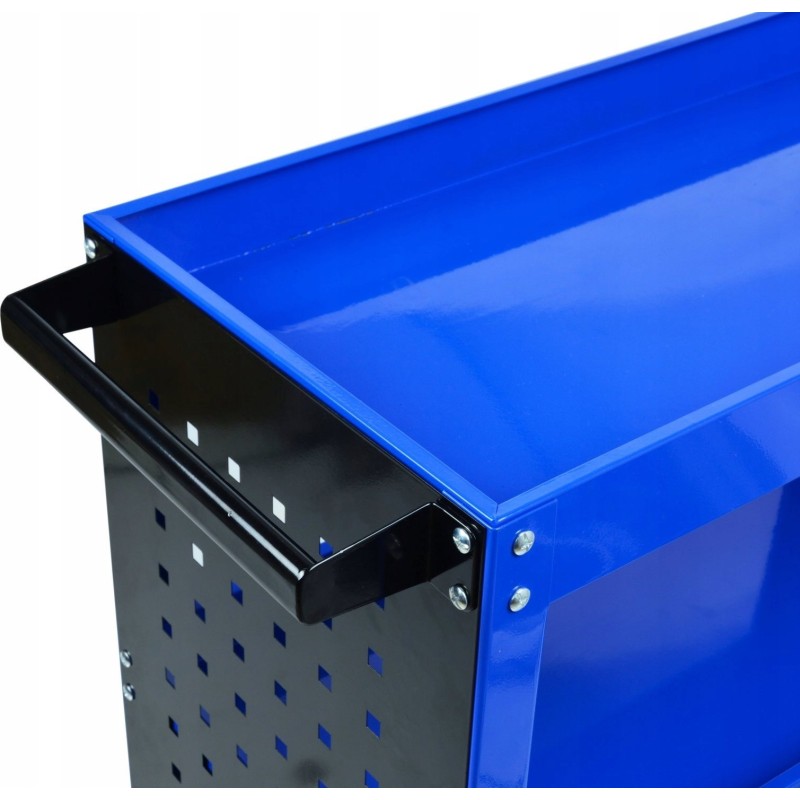 Jest to profesjonalny, solidnie wykonany wózek warsztatowy, który pomoże utrzymać porządek na Twoim stanowisku pracy. Wózek posiada wygodny uchwyt, który można przykręcić, aby ułatwić transport. Wyposażony jest w trzy pojemne półki oraz 4 koła, w tym 2 z hamulcem.