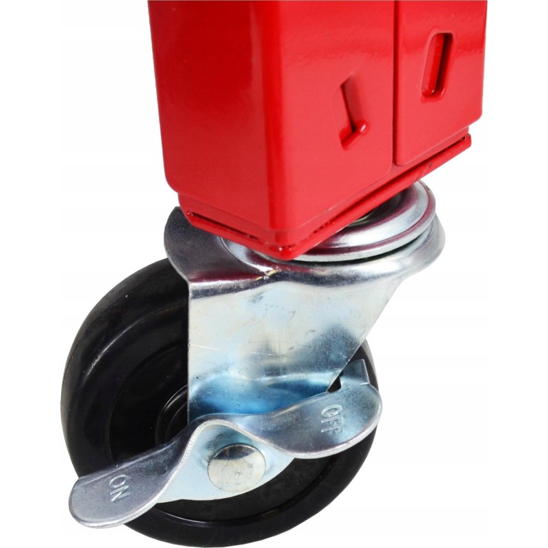 Cztery obrotowe kółka, w tym dwa z hamulcami.