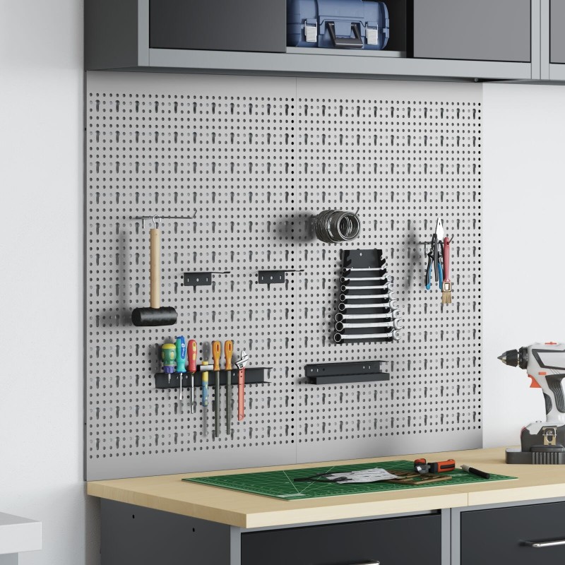 - Wszechstronne zastosowanie: Ten zestaw paneli idealnie sprawdzi się w garażu i warsztacie, pomaga utrzymać porządek.