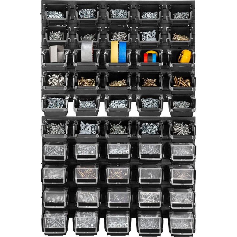 SOLIDNE - organizery wykonano z tworzywa sztucznego, które zapewnia bezpieczeństwo użytkowania nawet przy skrajnych temperaturach (od -20 do 100 stopni), a także w kontakcie z substancjami chemicznymi (m.in. smary, oleje, kwasy i alkohole).
