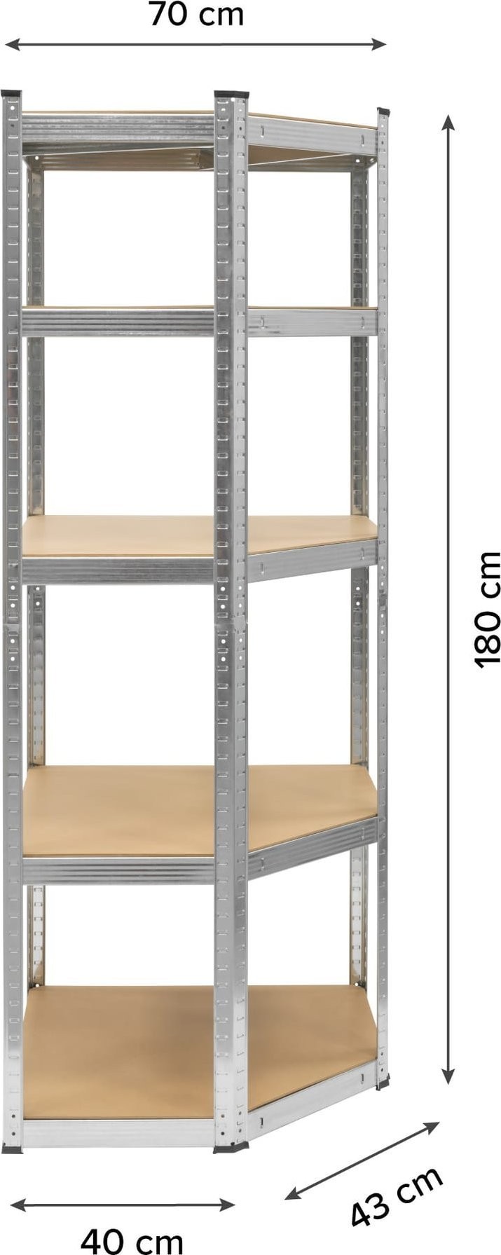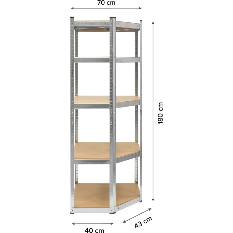 Rebel Regał magazynowy narożny 180x40x70 srebrny Rebel