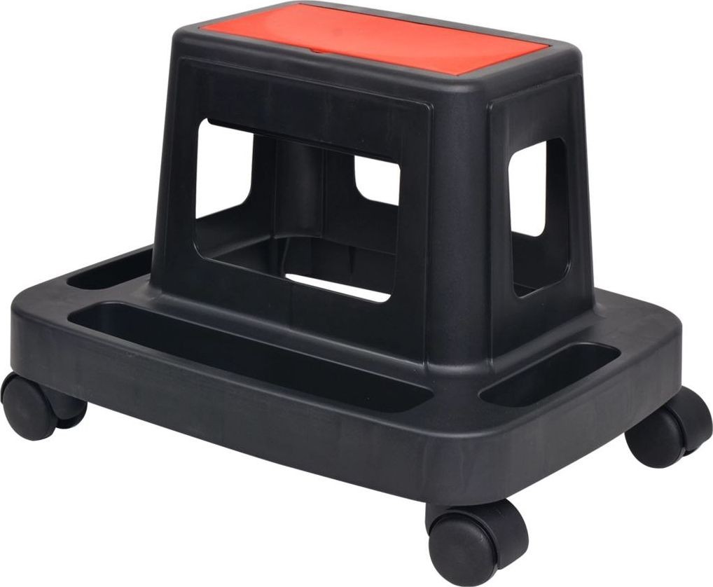Nasz wszechstronny, mobilny taboret warsztatowy został zaprojektowany ze specjalnymi zagłębionymi schowkami umieszczonym w podstawie oraz pod siedziskiem. Dzięki niemu możesz trzymać narzędzia, akcesoria i części w zasięgu ręki lecz nie na widoku, jednocześnie używając podręcznego taboretu. Wykonany jest z solidnego plastiku, zapewniającego wytrzymałość i wyposażony w cztery kółka ułatwiające manewrowanie.