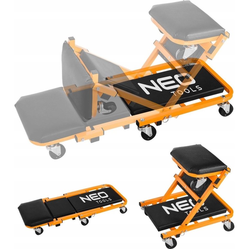 Produkt marki NEO umożliwia sprawną pracę pod samochodem, ułatwia zadania warsztatowe oraz kierowany jest do osób pracujących przy pojazdach mechanicznych.