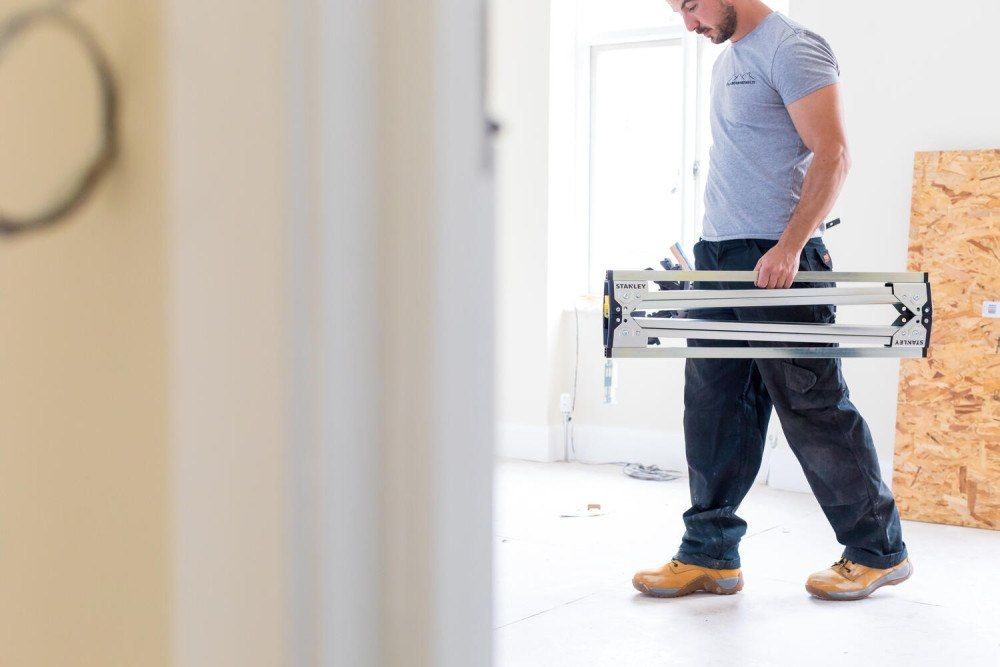 Składane nogi umożliwiają szybką konfigurację i rozkładanie konia tnącego na miejscu Solidna stabilna konstrukcja umożliwia podparcie do 340 kg (na parę)