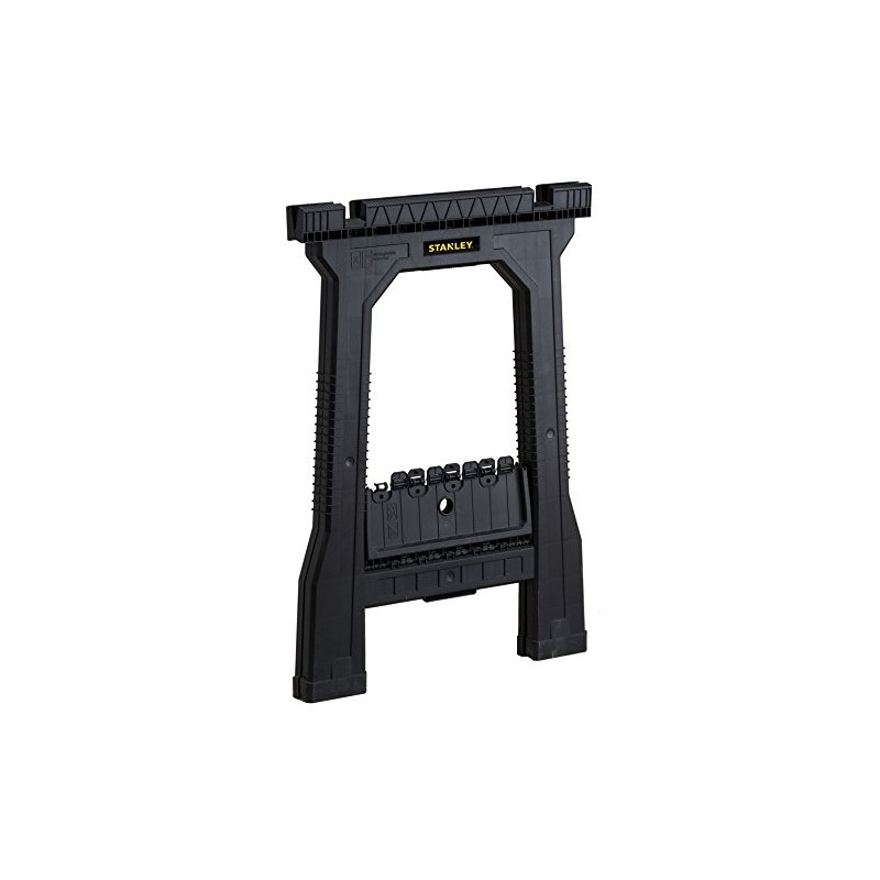 - W kobyłkach JUNIOR STANLEY® znajdziemy także rowki typu V do mocowania i przytrzymywania, pozwalające na bezpieczne cięcie nawet najbardziej twardych materiałów